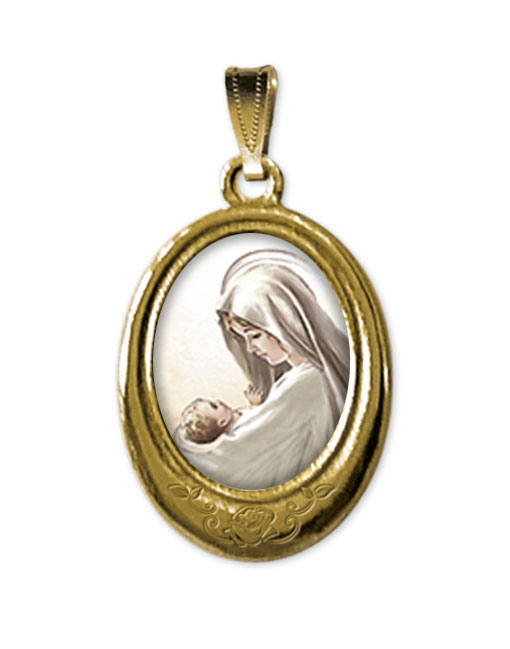 Medaglia con occhiello, OVALE e decorazione in basso ORO con resinato monofacciale MADONNA CON BAMBINO imm 23