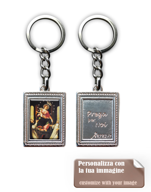 Portachiavi rettangolare monofacciale 2.7×3.5 cm con cornice lavorata Nikel lucido